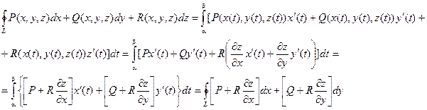 R(x, y, z) – непрерывны на кривой АВ, то криволинейные интегралы