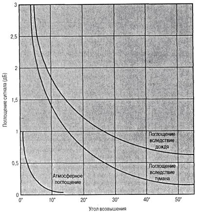 Рис. 9. Затухание сигнала (полосы С), обусловленное атмосферным поглощением