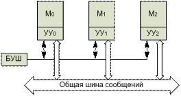 1)для организации взаимодействия УУ в СУ используется системный интерфейс, реализованный в виде общей шины сообщений (ОШС).