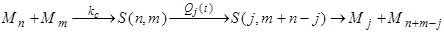 где kc - константа скорости диффузионно-контролируемого процесса образования столкновительного комплекса S (n,m), Qj (t) - вероятность того, что за время t, прошедшее от момента образования столкновительного комплекса, в одной из мицелл окажется j молекул, и, соответственно, в другой мицелле (m+n-j) молекул.