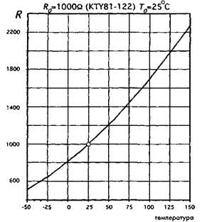 где Ro и Т0 — сопротивление в Омах и температура в Кельвинах, измеренные в эталонной точке. Например, рабочий диапазон датчиков KTY-81 составляет — 55...+150°С, А = 0.007874К-1,