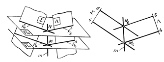 . Соединив полученные точки N и M прямой m, определяют проекцию искомой линии пересечения. Если плоскость S (A, B, C) и L(m