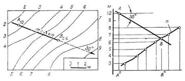 2. Как строится линия пересечения топографической поверхности с плоскостью?