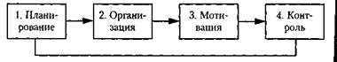 Процесс менеджмента отражает рекомендованную последовательность выполнения основных функций управления, точнее, последовательность начала действий по выполнению функций, так как осуществление многоконтурной обратной связи приводит к одновременному осуществлению функций (рис. 1).