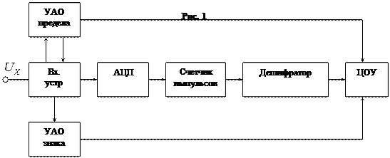 Цифровые вольтметры постоянного напряжения строятся по принципу уравновешивающего или прямого преобразований. Общая структурная схема такого вольтметра представлена на рис. 8.