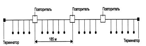 Рис. 17. Повторитель позволяет увеличить длину сети Ethernet