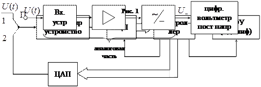 Период дискретизации также определяется быстродействием АЦП. Контроллер содержит микропроцессор, который позволяет найти и действующее значение напряжения, и амплитудное, и средневыпрямленное. Микропроцессор вычисляет значения этих напряжений и передает их на цифро-отсчетное устройство. ЦАП по сигналу контроллера может вырабатывать переменное напряжение с известными параметрами, которое применяется для калибровки вольтметра. Процесс калибровки может происходить и автоматически.