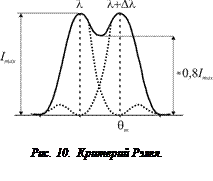 считаются разрешенными, если главный максимум дифракционной картины для одной спектральной линии совпадает по своему положению с первым дифракционным минимумом для другой спектральной линии (см. рис.10).