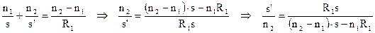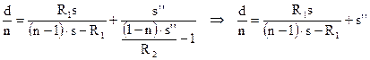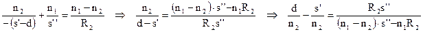 Здесь R1=R, R2= -∞, d=R, n1=1, n2=n.