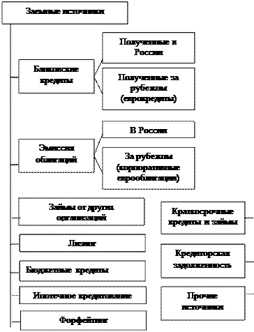 · Заемное финансирование (банковские кредиты, размещение облигаций, лизинг и пр.).