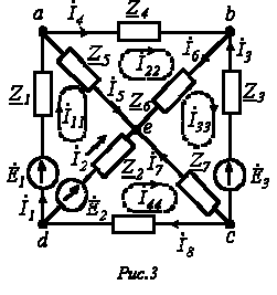 Идея метода контурных токов: уравнения составляются только по второму закону Кирхгофа, но не для действительных, а для воображаемых токов, циркулирующих по замкнутым контурам, т.е. в случае выбора главных контуров равных токам ветвей связи. Число уравнений равно числу независимых контуров, т.е. числу ветвей связи графа