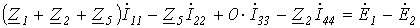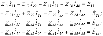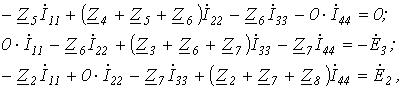 Таким образом, получили уравнение для первого контура относительно контурных токов. Аналогично можно составить уравнения для второго, третьего и четвертого контуров: