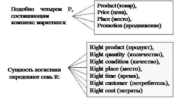 И, наконец, интегративные качества логистической системы выражаются в способности осуществлять процессы товародвижения наиболее эффективно, которая проявляется в системе в целом, при комплексном управлении товародвижением (управлении, ориентированном на процесс), и не проявляется при изолированном, функционально-ориентированном управлении в рамках отдельных звеньев и элементов системы. Для характеристики интегративных качеств логистических систем в теории логистики используется принцип «семи R» («логистический микс»): Right product (продукт), Right quantity (количество), Right condition (качество), Right place (место), Right time (время), Right customer (потребитель), Right cost (затраты) [6, с.90]. Что означает способность логистической системы поставлять продукт нужный конкретному потребителю, в необходимом количестве, нужного качества, в нужное место, в нужное время и при минимально-необходимом уровне затрат.