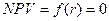 r2 - значение табулированной ставки дисконтирования, при которой f(r2)> или <0;