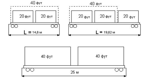 В контейнеровозах (КВЗ) помещается 10 или 12 трех- или пятитонных контейнеров.