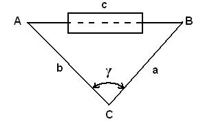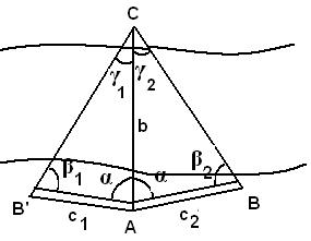 Неприступные расстояния вычисляют из построенных на местности вспомогательных треугольников и измерения некоторых их элементов.