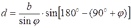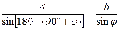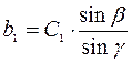 Вычисление длины линии АС=b по теореме синусов.