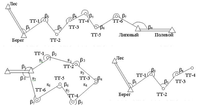 Выбор формы хода зависит от характера территории объекта. Проложение висячих ходов допускается в отдельных случаях при съемке неответственных объектов.