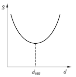 | Себестоимость фосфорной кислоты S в зависимости от степени измельчения фосфора (от диаметра частиц фосфата d) |