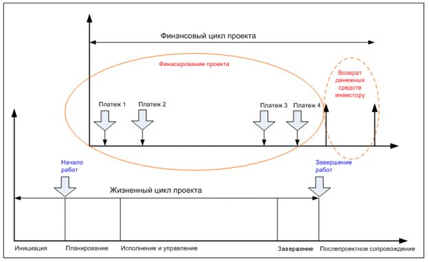 Рис 6.3. Связь между жизненным и финансовым циклами проекта.