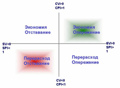 Ø отклонение по срокам — SV (Schedule Variance). Равно разнице между плановой стоимостью выполненной работы и плановой стоимостью запланированных работ: SV = EV – PV;