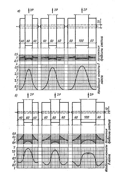 6) в некоторых случаях характер эпюры моментов по длине нагеля зависит от толщины элементов. При увеличении толщины или, что то же самое, длины нагеля максимальный момент уменьшается (см. рис. IV.19), что позволяет увеличить несущую способность. При этом