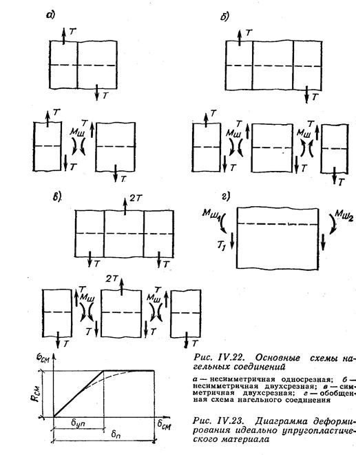 упругопластического материала (рис. IV.23) для смятия древесины и для изгиба нагеля;
