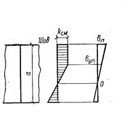 На основании перечисленных предпосылок и основных расчетных схем были приняты прямолинейные эпюры напряжений смятию. Так, например, если δп/δуп = 1, то пластическая зона деформирования не образуется и краевое напряжение смятию будет равно Rсм. При δп/δуп = 2зона смятия со стороны более напряженной кромки будет иметь две равные части — упругую с напряжениями, равными от 0 до RСм, и пластическую с постоянными напряжениями, равными RСм (рис. IV.24).