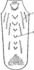 Наряду с отмеченной общей закономерностью распределения ликвирующих примесей в слитке спокойной стали наблюдаются специфические виды ликвации: V-образная ликвация под усадочной раковиной и скопление примесей в виде нитей или полос — Λ - образная ликвация или «зона усов» (см. рисунок 24).