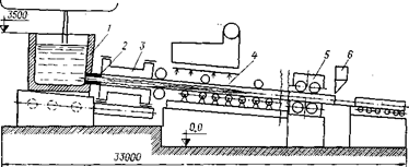 Технологическая ось машин этого типа расположена горизонтально или наклонена на угол до 15-20° к горизонтали. Схема горизонтальной МНЛЗ приведена на рисунке 28.