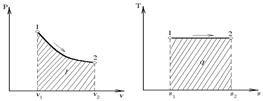 Изображение изотермического процесса в p,v и T,s – координатах.
