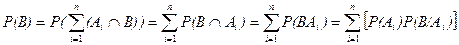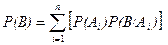 Теорема 2. Если события А1,A2,… Аn образуют полную группу событий, Р (Аi) > 0 (так как не будет определено P (B / Ai)), то вероятность некоторого события B Î S определяется, как сумма произведений безусловных вероятностей наступления события Аi на условные вероятности наступления события B, т.е.