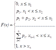 Аналогично, если хi < х £ хi+1, то F (x) = р1 +р2+…+рi.