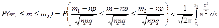 Поэтому, учитывая (1) для вычисления вероятности того, что число успехов в n испытаниях Бернулли заключено в пределах от m1 до m2, можно использовать формулу