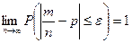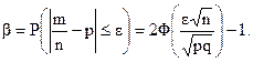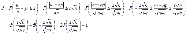 Обозначим через b вероятность того, что относительная частота наступления успеха в n испытаниях Бернулли отклонится от вероятности успеха p не более чем на e > 0, т.е.