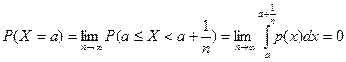 6. Вероятность того, что непрерывная случайная величина примет конкретное значение равна нулю, т.е.