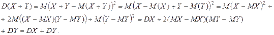 Доказательство. D(C+X) = M(X+C–M(X+C))2 = M(X+C–MX–MC)2 = M(X+C–MX–C)2 = M(X–MX)2 = DX.