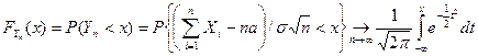 функция распределения Yn для всех х Î R, при n ®¥ асимптотически приближается к функции распределения нормированной нормальной случайной величины, т.е.