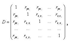 – ryxj – коэффициенты, показывающие тесноту связи j -го фактора xj и функции отклика у;