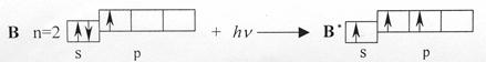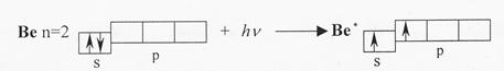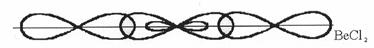Энергия электронов р-подуровня выше, чем энергия электронов s-подуровня. Из исходных s- и р-орбиталей возбужденного атома бериллия (Be*) образуются две гибридные, одинаковые по энергии орбитали (облака) в форме неправильной гантели, расположенные под углом 180о друг к другу