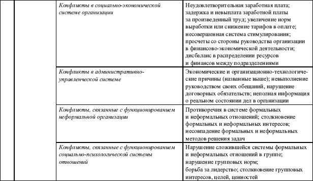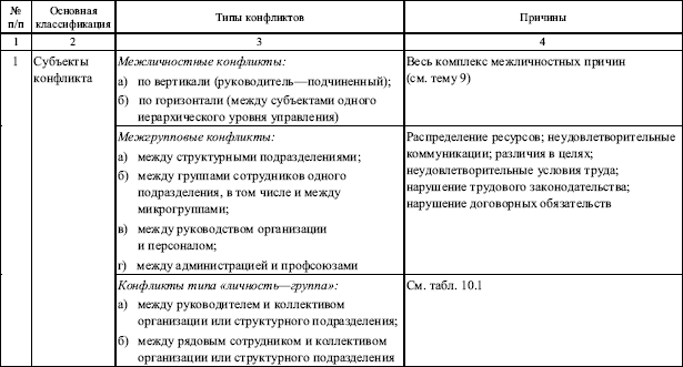 Многообразие конфликтов в организации можно представить в виде табл. 12.1.