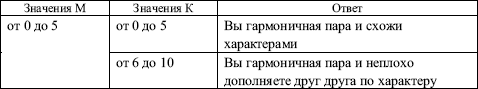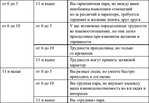 Предстоящее обследование слишком кратко и уже потому поверхностно. Не отнеситесь к нему чересчур всерьез. Оно может показать, что вы и ваша невеста или супруга (жених или муж) «трудная» пара. Но не забывайте, что отношения людей диалектичны. «Трудную» пару подчас связывают более сильные, бурные чувства, чем гармоничную. Поэтому основная задача обследования – способствовать откровенному обмену двух людей мнениями друг о друге.