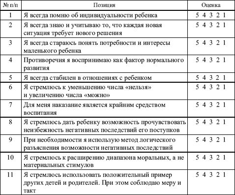Проанализируйте и оцените по пятибалльной шкале свое поведение в процессе воспитания ребенка по 11 позициям, представленным в следующей матрице: