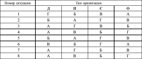 Подсчитайте количество набранных вами баллов по каждой позиции и определите полученные приоритеты личных ориентаций в руководстве.