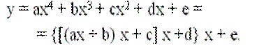 При разработке вычислительного алгоритма целесообразно стремиться к минимизации количества вычислительных операторов и к минимальному использованию объема памяти, не ухудшая при этом точность вычисления выбранной последовательностью вычислительных действий. Например, степенной полином целесообразно вычислять по схеме Горнера:
