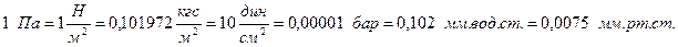 Взаимосвязь между единицей давления, принятой в Международной системе (СИ), и применяемые ранее единицами следующая: