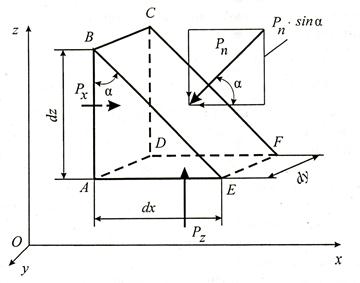 Спроецируем все силы, действующие на элементарную трёхгранную призму на оси координат.