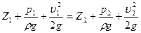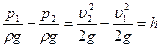 , для горизонтально установленного водомера уравнение Бернулли (74) запишем в следующем виде: