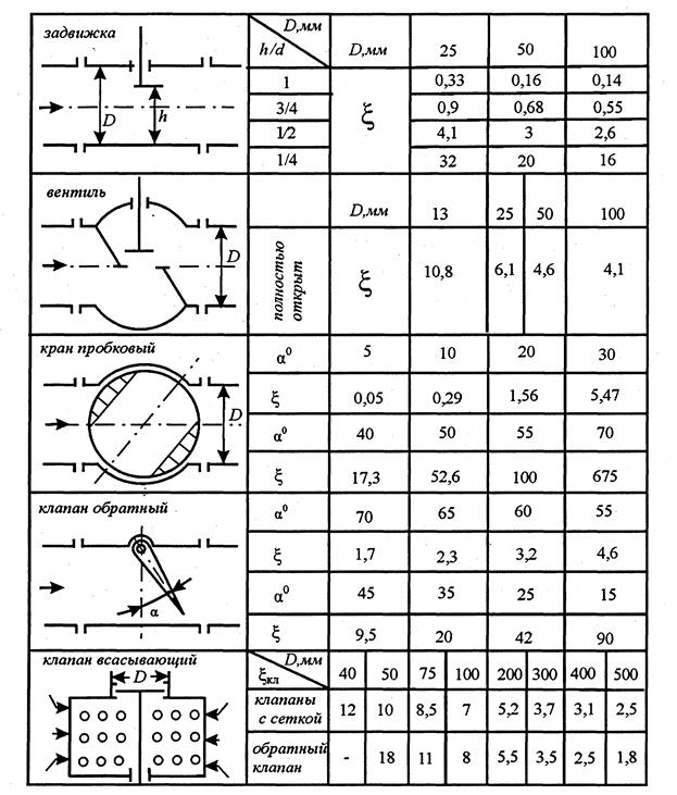 Местные потери напора определяются по формуле Ю. Вейсбаха: