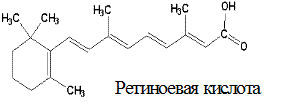 В настоящее время большое внимание в мировой литературе уделяется производным витамина А – ретиноидам. Полагают, что их механизм действия сходен со стероидными гормонами. Ретиноды действуют на специфические рецепторные белки в клеточных ядрах.Далее такой лиганд-рецепторный комплекс связывается со специфическими участками ДНК, которые контролируют транскрипцию специальных генов. Идентификация этих генов служит предметом активного научного поиска.